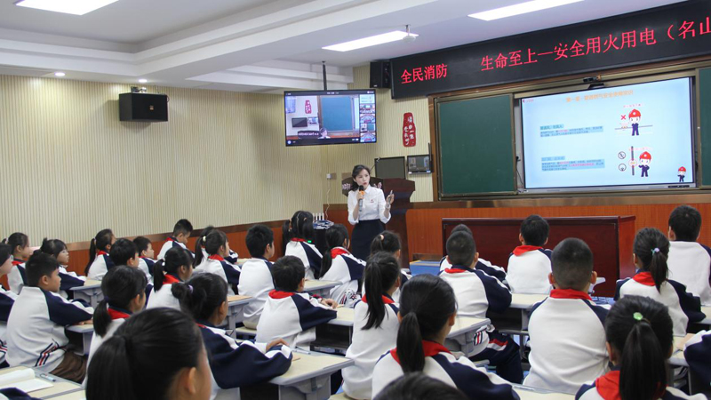 玉林市玉州区消防大队工作人员则聚焦消防安全,结合校园、家庭厨房等常见火灾场景,用图片和短视频讲解火灾报警技巧,“说清地址、讲清火情、留下电话”,以及火场逃生“低姿弯腰、湿毛巾捂鼻、不乘电梯”的自救方法,让师生们掌握实用的应急避险技能。