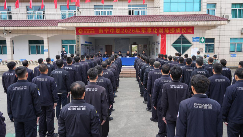 南宁中燃总经理吴广国进行致辞并宣布军事化训练活动正式启动。吴广国表示,南宁中燃肩负着全市燃气管网和燃气用户的安全保障重任,将紧扣“科技驱动型综合能源及美好生活服务商”的战略发展目标,积极实施“一变三”战略规划,以“科技转型+铁军作风”为抓手,通过持续开展练兵和标准化训练,让一线员工在实战化训练中锤炼本领,打造一支“召之即来、来之能战、战之必胜”的中燃铁军队伍,以铁的纪律和担当筑牢燃气安全防线,切实当好城市燃气安全的“守护者”。