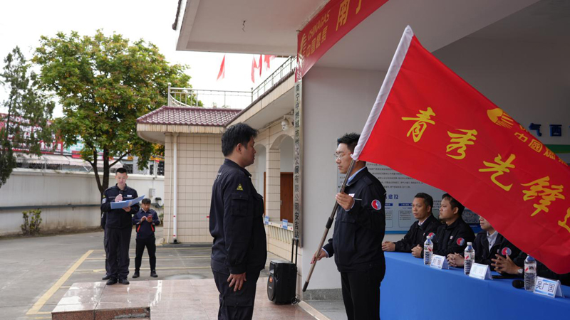 旗帜猎猎迎风展,士气昂扬启新程。授旗仪式上,70名来自南宁中燃管网巡线、维修抢险、入户安检等关键岗位的退役军人、一线职工代表组成6支连队,依次从公司领导手中接过队旗。